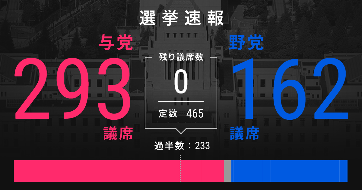 衆院選で全465議席確定 自民261、立民96 - 日本経済新聞